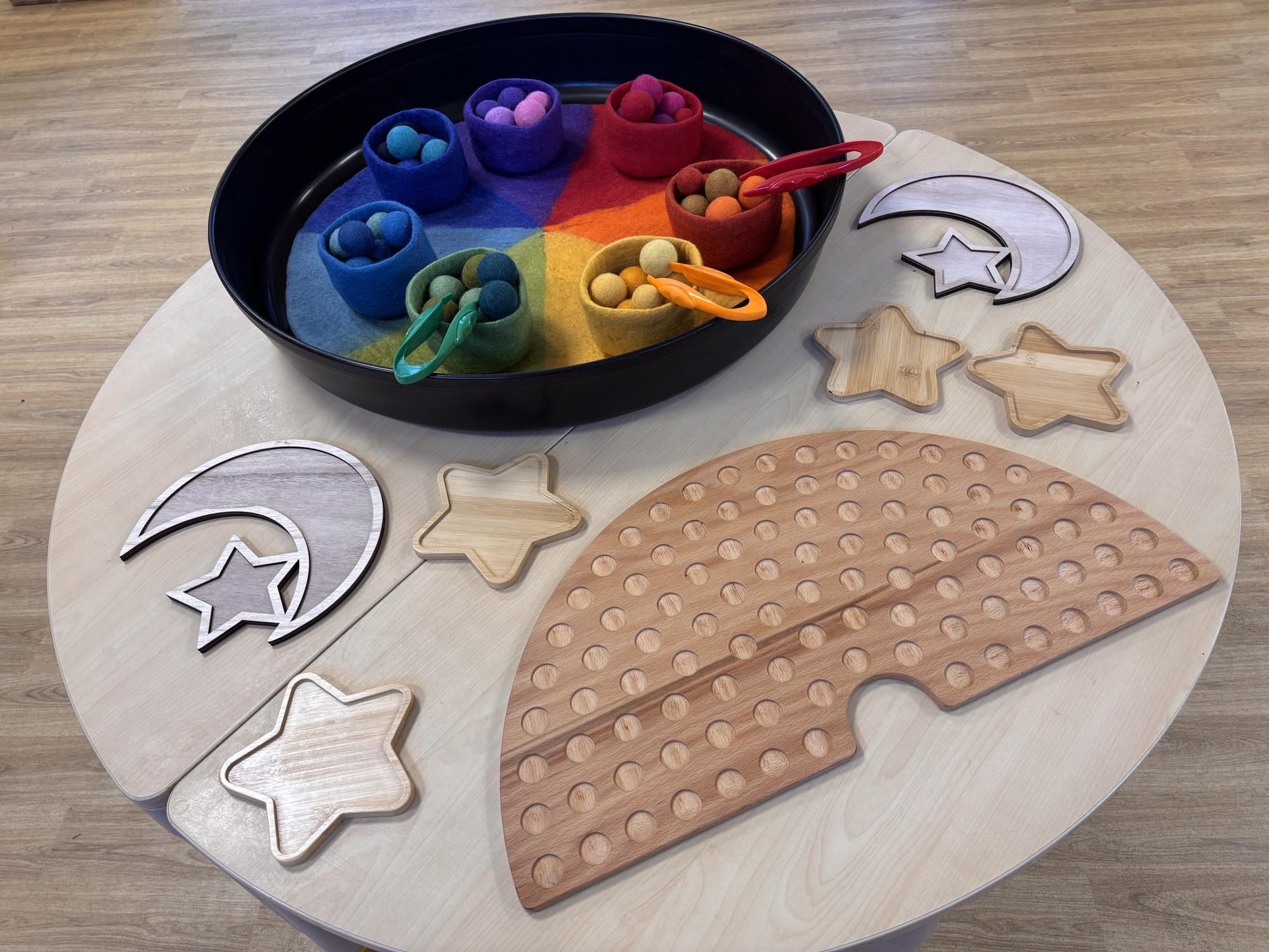 At Woodfield, we recognise that having a calm space for all is important during what can be a very busy day! We have developed a sensory room that all our children can access throughout the day with a familiar adult. The space includes different toys and resources that provide sensory feedback such as a dark den, bubble tubes and sequin/texture walls.