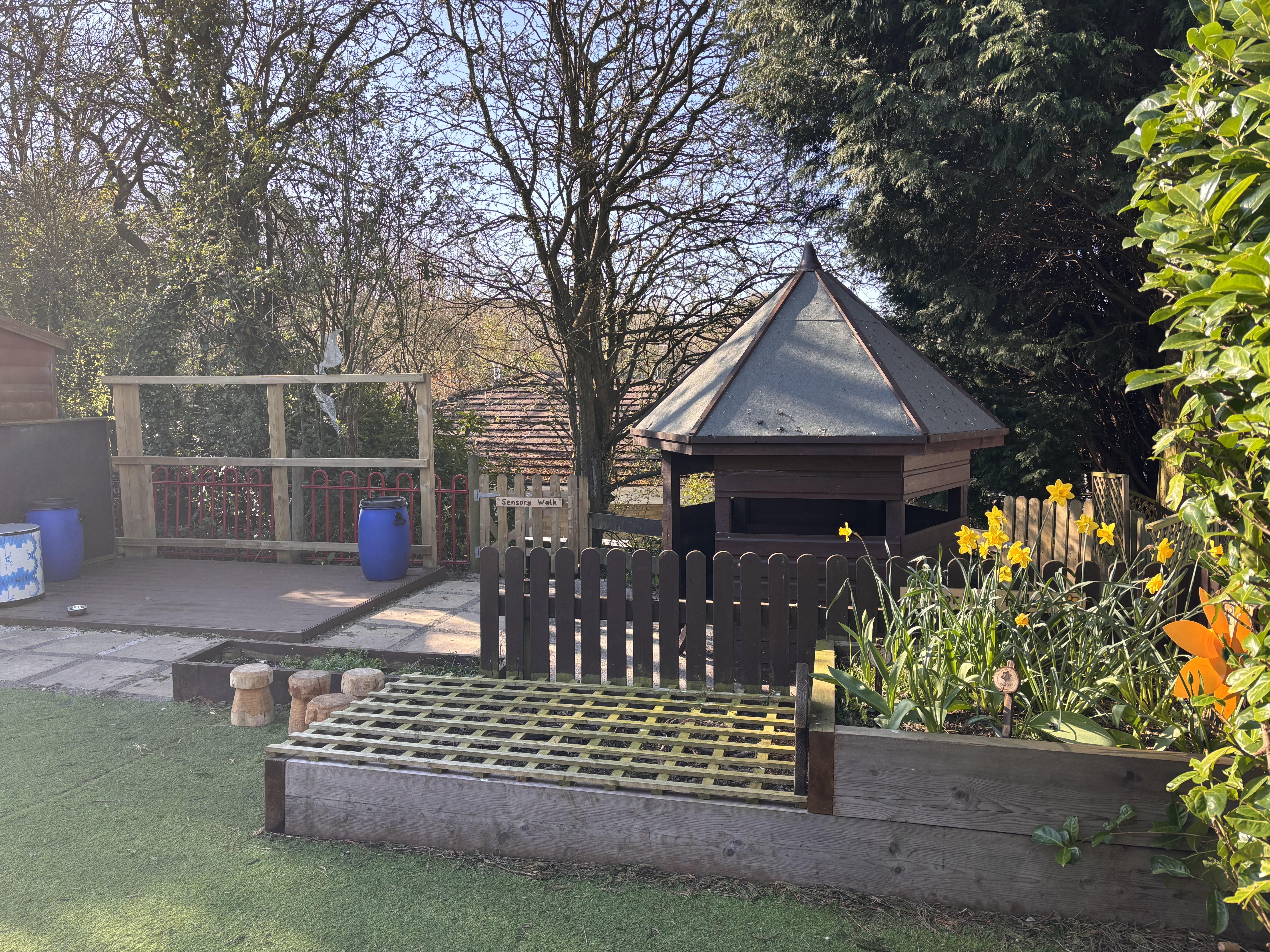 We are incredibly lucky to be surrounded by outdoor space. We have worked hard to develop this space to allow our children lots of different learning experiences.