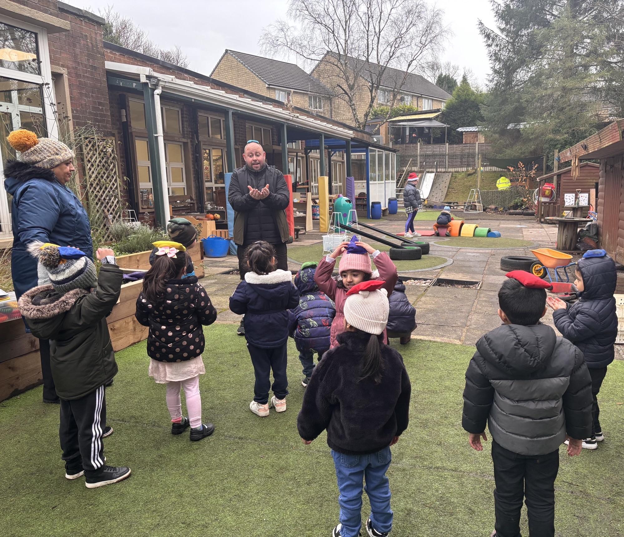 We also use our outdoor space as often as we can for PE with Kanga Dave. He joins us every Friday.